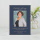 Um modelo de programa de memorial de funeral de ordem de serviço personalizado elegante em um fundo azul clássico. Fácil de personalizar texto e foto.