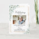 Programa memorial funerário com uma fotografia do falecido, seu nome, datas, local do evento, data do evento, e elegante quadro de ouro com cor d'água Eucalyptis Leaves. Na dentro está um obituário, e a ordem de serviço; e atrás de outra foto, uma nota de agradecimento e o segundo lugar para depois do funeral. Para mais personalização, clique no link "personalizar mais" e use nossa ferramenta design para modificar esse modelo. Se precisar de ajuda ou itens correspondentes, entre em contato comigo.