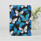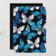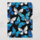 Borboletas realistas, azuis e brancas têm um padrão uniforme em fundo preto.