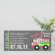 Este ônibus está indo para uma noite de festa inesquecível. Crie seu próprio itinerário neste passe de ônibus, mude a cor do bilhete também. Personalizável para qualquer evento.