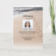 Uma bela celebração do programa de funeral com uma foto da cena da praia e pegadas na areia. Adicione suas fotos e texto personalizado a todos os quatro lados - um obituário, ordem do serviço, poema, obrigado da mensagem, etc. Este programa é tão fácil de personalizar - basta clicar em "personalizar este modelo" para alterar o texto e as fotos ou clicar em editar para personalizar ainda mais. Este é, de fato, um programa de um tipo que as pessoas irão apreciar para sempre.