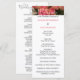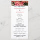 Bem-vindo é escrito em um roteiro branco elegante contra rosas cor-de-rosa pastel. Nomes de noiva e de noiva em cor-de-rosa rosa pastel contra fundo branco nítido. Cartões do Programa de Casamento projetados para seis mestres-mães e nomes de padrinhos de casamento. Se você tiver uma festa de casamento menor, simplesmente exclua as bridesmaids e linhas de padrinhos de casamento extras não necessárias e remova o espaçamento extra entre títulos clicando no botão deletar para mover a linha para cima para manter o espaçamento de uniformidade. Design de fotografia original © TamiraZDesign.