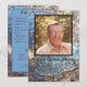 Personalize um programa funerário com a foto do ente querido morto. O fundo mostra uma foto de uma rocha labradorita azul. A citação, "A vida é eterna, e o amor é imortal, e a morte é apenas um horizonte; e um horizonte não é nada além do limite de nossa visão", de Rossiter Worthington Raymond está na frente abaixo da foto, nome e anos de vida. Na parte de trás está espaço para a ordem dos serviços para o funeral, a lista de palestrantes, e outra citação, "Como um pássaro cantando na chuva, que memórias agradáveis sobrevivem no tempo da tristeza", de Robert Louis Stevenson. A foto labradorita exibida no verso com informações sobre o programa. Fotos e texto são configurados para serem personalizados com suas próprias fotos e texto. Se precisar de ajuda para personalizar, entre em contato comigo.