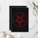Pentagrama vermelho, invertido, texturizado em círculo, sobre fundo preto. Símbolo oculto. 666