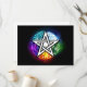 Pentagrama luminoso desenhado artificialmente com cinco elementos mágicos, água, terra, fogo, astral, ar sobre fundo negro. Pentagrama Wiccan. Wicca