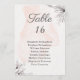 Estes cartões elegantes são perfeitos para uma recepção de casamento simples e romântica. O design destas placas de números de tabela de dois lados apresenta um design floral de classe e na moda com ilustrações de flores desenhadas à mão em cinzas escuras sobre um fundo aquoso cor-de-rosa-pêssego claro. Edite facilmente os campos de modelo para adicionar seus números de tabela personalizados e os nomes de seus convidados em fontes de cinza elegantes. Esta placa de casamento faz parte da nossa coleção "Casamento Romântico de Pêssegos e Cinzas", com itens coordenadores e artigos de papelaria para criar uma suíte de casamento única.