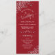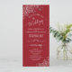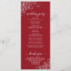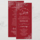 Este belo programa de casamento apresenta uma elegante design com texto branco sobre fundo vermelho de fogo e moinhos de folhas de folhas de cinza de prata de folha e espirros nos cantos. Os títulos são escritos em caligrafia com script de rico, e há espaço para os detalhes da sua cerimônia e festa de casamento, assim como um obrigado curto para o seu convidado. É uma maneira maravilhosa de dar as boas-vindas aos seus amigos e familiares à sua celebração de casamento.