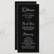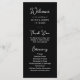 Estes programas de boas-vindas de casamento preto, simples e na moda, apresentam tipografia branca, estilo vintage. Um olhar elegante e clássico minimalista que ainda é único e contemporâneo. Adicione facilmente a sua ordem de cerimônia, uma mensagem especial de obrigados aos seus convidados, e os nomes da sua festa de casamento.