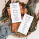 Esses programas de boas-vindas de casamento simples e na moda, preto e branco apresentam tipografia de script de estilo vintage. Um olhar elegante e clássico minimalista que ainda é único e contemporâneo. Adicione facilmente a sua ordem de cerimônia, uma mensagem especial de obrigados aos seus convidados, e os nomes da sua festa de casamento.