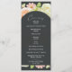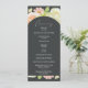 O programa de cerimônia de casamento apresenta os seus detalhes na frente e atrás em letras brancas. Lindas flores de aquarela - hífenes brancas e verdes, rosas cor-de-rosa e creme, margaridas, caules pequenos e folhas acenam a frente com suas informações sobre uma camada de arco escuro. CORRESPONDENDO a itens na nossa loja.