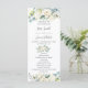 Projetado para coordenar com a nossa coleção de casamento Rustic Ivory, este elegante programa de casamento apresenta uma bela cor d'água, rosas brancas de marfim, hidrangeas, estoques e eucalipto verde. Personalize-o com os detalhes do seu casamento de forma fácil e rápida, basta pressionar o botão personalizá-lo para reorganizar e formatar o estilo e a colocação do texto. Duplo lado. c) O Feliz Cat Studio