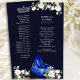 Programa Elegante de quinceanera em azul-da-noite com rosas brancas cremosas. O design está completo com calçados de tiara e salto alto em um travesseiro com miçangas rosárias. O programa tem uma paleta colorida de azul real, azul-da-noite, prata e branco cremoso. Chic e feminina são a ordem do dia para sua comemoração de 15. A coordenação de papelaria e decoração de festas está disponível na minha Coleção Princesa de Vestidos e Rosas Quinceanera, mas por favor, envie-me uma mensagem se precisar que eu acrescente outros itens.