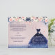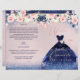 PixDezines programa elegante de quinceanera com flores de aquarela brilhantes em azul-claro-marinho, um vestido brilhante em borboletas azuis-marinho, esbranquiçadas e prateadas e fundo iridescente (veja filtros para mudar de tom). Todos os elementos são editáveis. Copyright © 2010-2021, PixDezines™. Todos os direitos reservados.