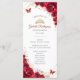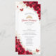 Programa de celebração de Quinceanera vermelha, dourada e branca. Cartão fino de eventos de dupla face. Recursos, fontes de script, borboletas douradas, rosas de aquarela e tiara. Perfeito para uma elegante celebração de glam estilo princesa. Personalize com seus próprios detalhes. Impressos convites Zazzle ou modelo de impressão digital instantânea para download.