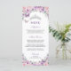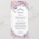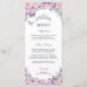 Personalize este cartão de menu fino prateado floral, com dois lados, lilás roxo e rosa pálido, de forma fácil e rápida, basta clicar no botão Editar usando ferramentas de Design para editar o texto, o texto, o estilo da fonte, o tamanho da fonte, a cor da fonte, adicionar mais texto, mover ou remover algumas imagens. As borboletas e a coroa são móveis, redimensionáveis, multiplicáveis e amovíveis. Personalize-o para se adequar à sua ocasião. Perfeito para Quinceañera, Doce 16, 18º Aniversário, Festa Princesa, Bola Debutante, Chá de panela, Batismo/Cristo e mais ocasião! Itens correspondentes disponíveis no repositório! c) O Feliz Cat Studio