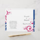 Celebre o seu casamento com graça e sofisticação com este rico e bonito jogo de casamento royal azul e fuchsia, brilhante e rosa. Apresenta um motif floral de videira robusta e enrolada ao longo do lado, com efeito inverso sobre um fundo branco. Todos os Designs Copyright © www.CustomInvitesOnline.com Este design está disponível como uma coleção completa!