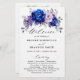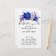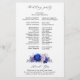 Elegante programa de casamento sobre o tema prata azul real, com elegante buquê de flores azuis, Marinhos, prata, cor branca pura, e folhas verdes de eucalipto. Entre em contato comigo para obter ajuda sobre a personalização ou se você precisar de outro produto com este design.