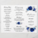 Elegante programa de casamento sobre o tema prata azul real, com elegante buquê de flores azuis, Marinhos, prata, cor branca pura, e folhas verdes de eucalipto. Entre em contato comigo para obter ajuda sobre a personalização ou se você precisar de outro produto com este design.