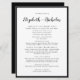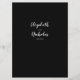 O Programa e Menu de Recepções de casamento Negra e Branca Moderna apresenta os nomes dos casais em uma bela caligrafia e data em uma fonte serif tradicional de um lado. O verso apresenta uma borda preta mínima com a ordem dos eventos de recepção, auto-falantes e descrições dos menus. Personalize com seus detalhes do dia do casamento. Este design está disponível em vários formatos e nos produtos de eventos de casamento que o acompanham.
