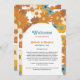 Um lindo padrão tridimensional inspirado nos anos 70 com arco. Uma safra minimalista olha o cartão itinerário do casamento com padrões de ranhura e paleta de cores retrógradas para quem adora padrões de ranhura, margaridas florais e designs de paleta de cores retrorreflectoras. Os convites de casamento e outros artigos de papelaria também estão disponíveis.
