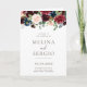 Felicite seu maravilhoso evento de casamento com este rico clássico de flores dobradas. O design apresenta lindas flores rosa, pincéis, azuis, marinhos e burgundy pintadas manualmente com folhas verdes, bem agrupadas em buquês elegantes para embelezar seus cartões de convite para eventos.