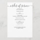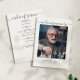 Programas de funeral elegantes em preto e branco com destaques em caligrafia manuscrita fornecem uma maneira moderna, mas atemporal, de celebrar a vida de um ente querido. A capa frontal apresenta uma homenagem fotográfica em página inteira com “Em Memória Amorosa”, nome e datas escritas em uma caligrafia graciosa, combinada com tipografia limpa para um visual sofisticado e pessoal. O fundo branco minimalista garante que a foto permaneça o ponto focal, criando um souvenir significativo para familiares e amigos. No verso, a ordem do serviço é apresentada de forma clara, incluindo música, hinos, leituras e detalhes da procissão, oferecendo aos convidados um guia fácil ao longo da cerimônia. O equilíbrio entre simplicidade e elegância torna este design versátil para funerais, memoriais ou celebrações da vida, enquanto a caligrafia no estilo manuscrito adiciona um toque caloroso e pessoal. Perfeito como guia de serviço e como um memento precioso, este programa captura amor, lembrança e dignidade em
