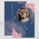 Crie uma primeira impressão inesquecível com este elegante Programa de Casamentos Azuis de marinho, com delicadas rosas cor-de-rosa-pincel e um design floral brilhante. O quadro circular de fotos douradas destaca lindamente o casal, acrescentando um toque pessoal ao convite. A mistura refinada de caligrafia e fontes serif melhora a estética clássica, mas romântica, fazer-a perfeita para casamentos modernos, elegantes e eternos. Ideal para casais que procuram um programa sofisticado com um toque floral suave e charmoso. F014
