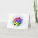 Rosa grande e florescente com pétalas arco-íris sobre fundo branco, pintadas com pedaços de tinta colorida e brilhante. 3d