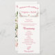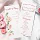 Este programa de casamento apresenta uma rosa artística de cor d'água floral e design, com um fundo creme e um elegante estilo de letra vermelha. Personalize-o com as informações do programa de casamento! Encontre itens correspondentes na Coleção de Casamentos Cristãos Florais de Rosa.