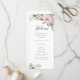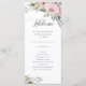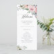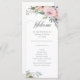 Este belo programa de boas-vindas ao casamento apresenta um buquê floral de cor-de-água tendenciosa de rosas coloridos poeirentos e flores em tons de pêssego, rosa, azul e verde, com elegante texto moderno e caligrafia em fundo branco.