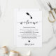 Este cartão moderno e elegante é o símbolo perfeito para as suas bolsas de boas-vindas do hotel. Digite os eventos principais e uma nota personalizada para ajudar seus convidados a navegar no fim de semana.