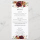 Projetado para coordenar com a nossa coleção de casamento Somerset, este elegante menu de casamento apresenta uma bela mistura de cor d'água, ferrugem, laranja queimada, rosas brancas de marfim, híbridos, estoques e arranjos verdes. Personalize-o com os detalhes do seu casamento de forma fácil e rápida, basta pressionar o botão personalizá-lo para reorganizar e formatar o estilo e a colocação do texto. Duplo lado. O Feliz Cat Studio