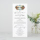 Bem-vindos convidados ao seu dia especial com este elegante programa de casamento, com detalhes de seu evento e informações de festa de casamento em um layout limpo e fácil de ler. Um design bem ilustrado no topo adiciona um toque personalizado que coordena com o tema escolhido. Perfeito para comemorações rústicas, clássicas ou modernas, esses programas ajudam os convidados a seguir e se tornar parte de sua cerimônia. Personalize facilmente o texto para criar um programa que é exclusivamente seu.