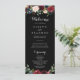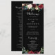 Este programa de casamento botânico preto é perfeito para um casamento clássico. A design apresenta flores brilhantes, vermelhas, marinhos, azuis e esbranquiçadas radiantes e graciosas pintadas à mão num fundo preto, inspirando beleza natural.