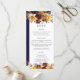 Projetado para coordenar com a nossa coleção de casamentos do Autumn Romance, este elegante menu de casamento apresenta uma cruz de cor aquática, laranja queimada, floral amarela e verde. Personalize-o com os detalhes do seu casamento de forma fácil e rápida, basta pressionar o botão personalizá-lo para reorganizar e formatar o estilo e a colocação do texto. Duplo lado. O Feliz Cat Studio