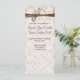 Este programa de convite de casamento rústico tem um impressão de burlap com uma camada de impressão de rendas e um arco de fio no topo. A burlap, lace e twine são apenas designs impressos. Não se trata de um tecido de burlap real, nem de rendas reais ou de fio. Apenas adicione a sua própria redação do programa de casamento, ou você poderia usar isso para um menu de casamento ou qualquer outro item necessário para o seu casamento. Este convite de casamento é mostrado no tipo de papel BÁSICO, mas eu recomendo a atualização para o tipo de papel FELT ou LINEN para um convite mais elegante com um toque texturizado. O FELT é um papel mais pesado que o LINEN. Pessoalmente, gosto muito do jornal FELT, mas por favor note que os brancos são "CREAM" no jornal FELT. Convites para Casamento de Churrasco e Lace, Cartões RSVP e Cartões Postage: Burlap Premium e Lace impressos para convite 5x7:
