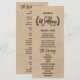 Este programa de casamento de caligrafia rustica é perfeito para um casamento de moda. A design apresenta uma tipografia divertida, escrita à mão, com deliciosos laços e espirais cercados por uma simples coroa de oliveiras. Inclua o nome da noiva e do noivo, a data e a localização do casamento, a mensagem do obrigado, a ordem do serviço e a festa noiva. Por favor, observe que isto não está impresso em papel kraft real. É um gráfico de alta qualidade feito para parecer papel kraft.
