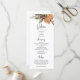 Programa de núpcias russo de Natal, com ilustração aquosa de botânicos de inverno, incluindo, por exemplo, a concha, o ramo dos pinheiros, as bagas, a laranja, etc. Todas as informações da cerimônia de casamento e o nome da festa de casamento listados neste programa.