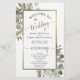 Estes programas de casamento são elegantes e saborosos, enquanto ainda são favoráveis ao orçamento. O design apresenta uma falso estrutura de ouro de folha de alumínio com molas pintadas manualmente de galhos de pinheiro e folhas de eucalipto em tons suados de verde-sábio, cinza e ouro. A tipografia apresenta uma caligrafia antiga em script, e há espaço para detalhes sobre a cerimônia, a festa noiva e um obrigado curto para você.