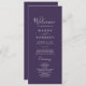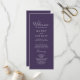 Este programa de casamento de arrogância de coordenação de lavandas é perfeito para um casamento de boho. A elegante, mas rústica design apresenta um roxo escuro e sangrento, com uma moderna sensação de jardim boêmico. Coordena-se com a Coleção de Lavandas Rústica de Paperie Fresca e Iummy. Inclua os nomes do casal, a data e o local do casamento, a mensagem do obrigado, a ordem de serviço, a festa de casamento e um memorial "em memória amorosa" opcional.