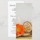 Dê aos seus convidados a agenda e a ordem da sua cerimônia de casamento com o encantador Programa Rustic Orange Daisy Woodland Wedding Wedding. Este casual, porém clássico, costume ao ar livre ou programa de casamento de inspo de floresta apresenta uma fotografia típica de uma flor de margarida laranja, uma fatia natural de madeira com a palavra LOVE queimado nela, cones de pínus castanhos, véu branco e fundo de burlap.