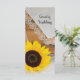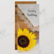 Mostre aos seus convidados a ordem da sua cerimônia de casamento e cronologia quando você personalizar o encantador Programa Rustic Yellow Sunflower e Lace Country Wedding. Este programa casual, porém clássico, personalizado de casamento do rancho ocidental apresenta uma fotografia floral acinzentada de um florescente de girassol amarelo, de um véu branco e de um lenço de linhagens aparadas com rendas, com um fundo de madeira de celeiro marrom.