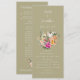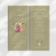 Adicione um toque gracioso à sua cerimônia com este programa de casamento floral de primavera verde sábio. Apresentando uma ilustração de buquê florescente e um elegante roteiro branco, este programa de dois lados descreve os detalhes da sua cerimônia e a festa de casamento em estilo. Totalmente personalizável para ajustado de sua celebração de casamento.