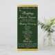 Esta design romântica apresenta um elegante fundo verde esmeralda com bordas de fita, detalhes da cerimônia de casamento e obrigado você na frente com os membros da festa de casamento atrás. Disponível em várias cores para seu tema de casamento. (A fita é simulada na trabalho de arte). Concebido para coordenar com a Coleção Caseira "Dois Tornar-se-ão Um - Prateado e Dourado". Para alterar os detalhes, clique em "Personalizar". Para mover o texto ou alterar o tamanho, a fonte ou a cor do texto, clique em "Clique para personalizar mais"