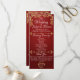 Esta design romântica apresenta um elegante fundo vermelho rubi e borda de folhas de ouro, detalhes da cerimônia de casamento e obrigado você na frente com os membros da festa de casamento atrás. Disponível em várias cores para seu tema de casamento. Disponível em várias cores para seu tema de casamento. Projetado para coordenar com a Coleção de Casamentos de Doves Elegantes, Coração e Folhas Douradas. Para alterar os detalhes, clique em "Personalizar". Para mover o texto ou alterar o tamanho, a fonte ou a cor do texto, clique em "Clique para personalizar mais"