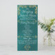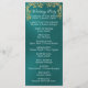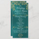 Esta design romântica apresenta um elegante fundo teal e borda de folhas de ouro, detalhes da cerimônia de casamento e obrigado você na frente com os membros da festa de casamento na parte de trás. Disponível em várias cores para seu tema de casamento. Disponível em várias cores para seu tema de casamento. Projetado para coordenar com a Coleção de Casamentos de Doves Elegantes, Coração e Folhas Douradas. Para alterar os detalhes, clique em "Personalizar". Para mover o texto ou alterar o tamanho, a fonte ou a cor do texto, clique em "Clique para personalizar mais"
