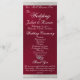 Esta design romântica apresenta um elegante fundo de burgundy com bordas de fita, detalhes da cerimônia de casamento e obrigado você na frente com os membros da festa de casamento atrás. Disponível em várias cores para seu tema de casamento. (A fita é simulada na trabalho de arte). Disponível em várias cores para as cores do tema do casamento. (A fita é simulada na trabalho de arte). Concebido para coordenar com a Coleção Caseira "Dois Tornar-se-ão Um - Prateado e Dourado". Para alterar os detalhes, clique em "Personalizar". Para mover o texto ou alterar o tamanho, a fonte ou a cor do texto, clique em "Clique para personalizar mais"