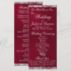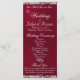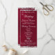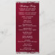 Esta design romântica apresenta um elegante fundo burgundy com bordas reluzentes, detalhes da cerimônia de casamento e obrigado você na frente com os membros da festa de casamento na parte de trás. Também disponível com diferentes planos coloridos para as cores do tema do casamento. (O brilho é simulado no trabalho de arte). Concebido para coordenar a Coleção de Casamentos "Dois Tornar-se-ão Um - Corações, Doves & Glitter". Para alterar os detalhes, clique em "Personalizar". Para mover o texto ou alterar o tamanho, a fonte ou a cor do texto, clique em "Clique para personalizar mais"