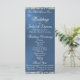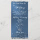 Esta design romântica apresenta um elegante fundo azul com bordas brilhantes, detalhes da cerimônia de casamento e obrigado você na frente com os membros da festa de casamento na parte de trás. Também disponível com diferentes planos coloridos para as cores do tema do casamento. (O brilho é simulado no trabalho de arte). Concebido para coordenar a Coleção de Casamentos "Dois Tornar-se-ão Um - Corações, Doves & Glitter". Para alterar os detalhes, clique em "Personalizar". Para mover o texto ou alterar o tamanho, a fonte ou a cor do texto, clique em "Clique para personalizar mais"