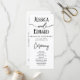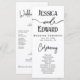 Certifique-se de que seus convidados tenham todas as informações de que precisam e adicione um toque de classe à sua cerimônia com nosso Simples Programa de Casamento Mínimo de Script Preto e Branco Moderno. Porque cada detalhe do seu dia especial merece ser perfeito.